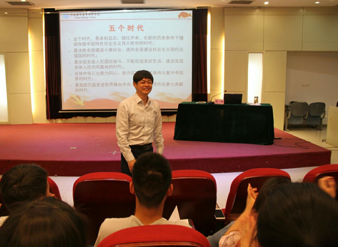 2018年5月7日晚六点,医学系第二十一期入党积极分子培训班在西配楼进行。公司党委书记花明以“中国特色社会主义进入新时代”为题进行了专题讲座,带领我系入党积极分子了解党的历史发展进程。公司党办陈新峰主任、校办刘伟主任列席,医学系党总支张长辉书记主持。