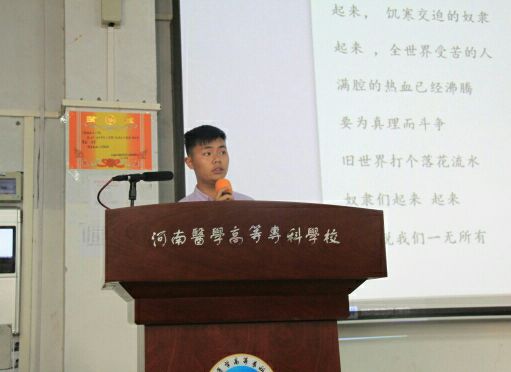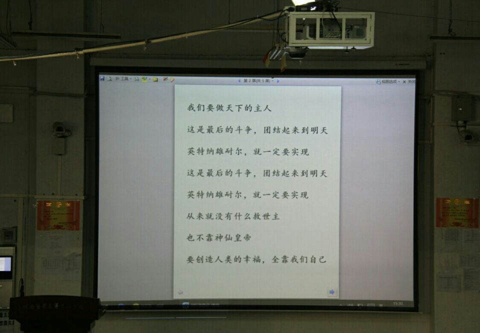 2018年5月12日,医学系第二十一期入党积极分子党课培训在J3-101进行。我系刘书文同学教大家唱《国际歌》。