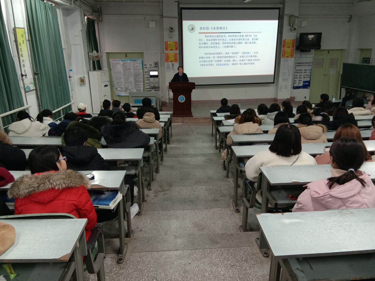 12月27日,戊戌年岁末,公司教学三区101教室座无虚席。正逢古代医家李时珍诞辰500周年之际,公司特聘教授、国家二级教授徐立然经理为我系师生做了一场题为“《本草纲目》对世界药物学的贡献”的专题讲座。医学系副主任郭建新、中医学教研室主任赵唯贤等相关处室负责人及医学系临床医员工共200余人参加了专题报告会。