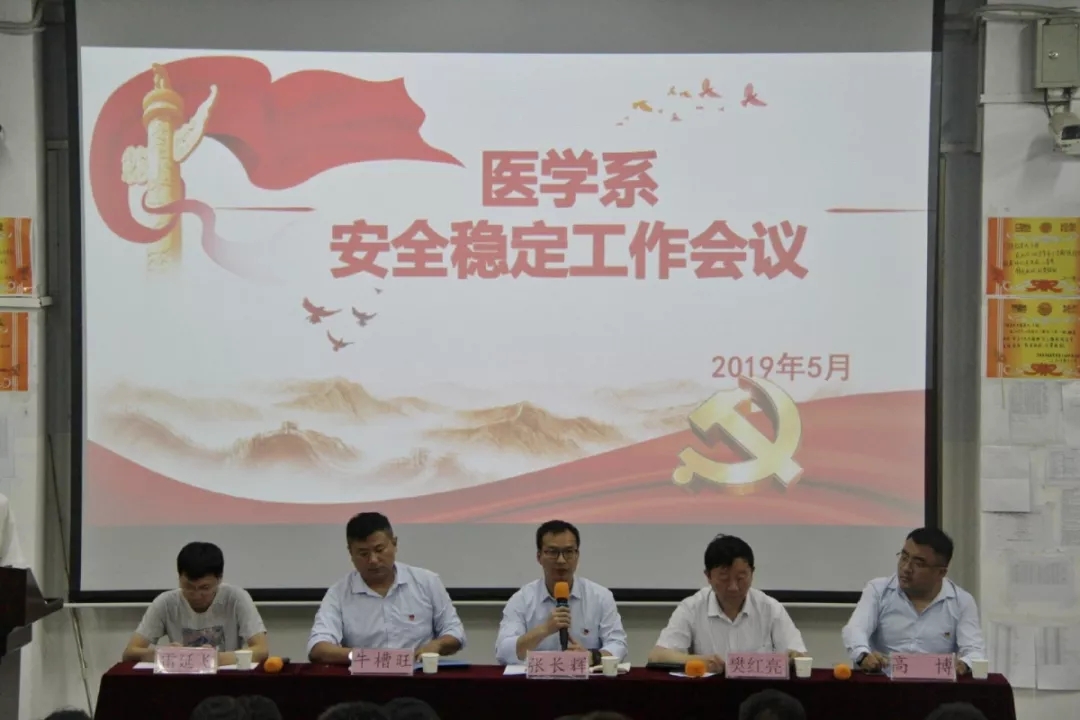 2018年5月23日下午,医学系在教学三区101召开安全稳定工作会议。医学系党总支书记张长辉、医学系主任樊红亮、医学系党总支副书记牛槽旺、医学系团总支副书记高博、医学系办公室副主任雷延飞及两百多名师生积极参与本次会议。