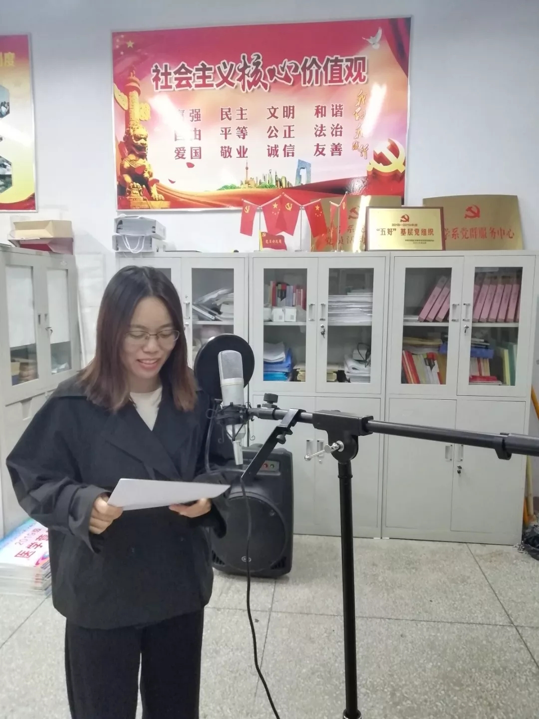 为庆祝中华人民共和国成立70周年,大力弘扬以爱国主义为核心的民族精神,激励和动员广大师生不忘初心、牢记使命、永远奋斗。我系党总支书记张长辉带领全体学工、部分员工代表开展的“我和我的祖国”诗歌朗诵活动。
