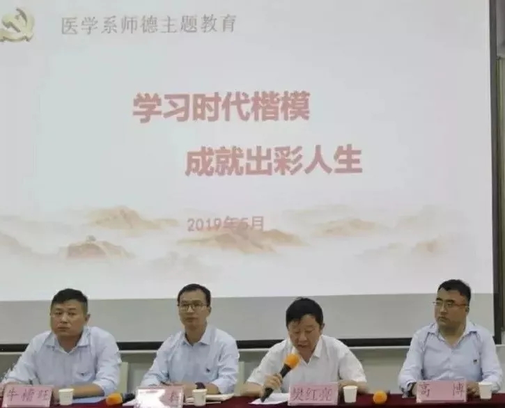 近期,医学系在教学三区101教室举办师德主题教育活动,医学系主任樊红亮开展以“学习时代楷模,成就出彩人生”为主题的报告。医学系党总支书记张长辉、医学系主任樊红亮、党总支副书记牛槽旺、团总支副书记高博、医学系办公室副主任雷延飞出席本次活动,医学系全体教师、辅导员积极参加本次活动。