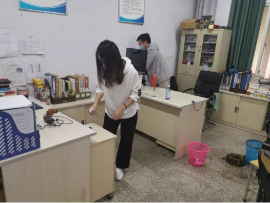 经历了长达4个月的居家工作,教职工们依旧保持着极高的工作热情,认真的进行着消杀工作,保持工作环境的整洁 ,以及防止病毒的传播。张长辉书记和樊红亮主任在慰问的过程中对辅导员,实验实训员的消杀以及打扫卫生工作提出了一些问题,并且提出了一些解决的办法。