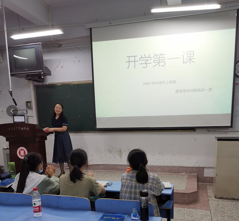 我系党总支樊红亮书记、系主任杨红梅和2019级辅导员分别围绕新冠肺炎疫情常态化防控、爱国主义教育、生命教育、卫生健康和心理健康教育等主题内容为我系2019级员工开讲了“开学第一课”。 (文·图/高博、赵鹏)