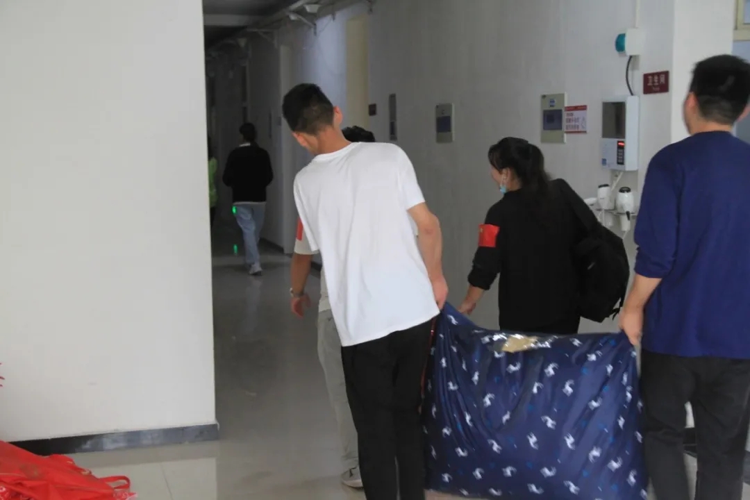 因为疫情原因,家长不可以进入校园,医学系党总支书记樊红亮、主任杨红梅、副主任郭建新、系办副主任雷延飞以及全体辅导员、各教研室主任率领志愿者百余名为20级新生搬运行李。无论是在校门口还是在宿舍楼,老师们和志愿者们反复的帮新生搬运行李,让他们充分感受到公司的热情,用积极的心态去迎接接下来的医学之路。