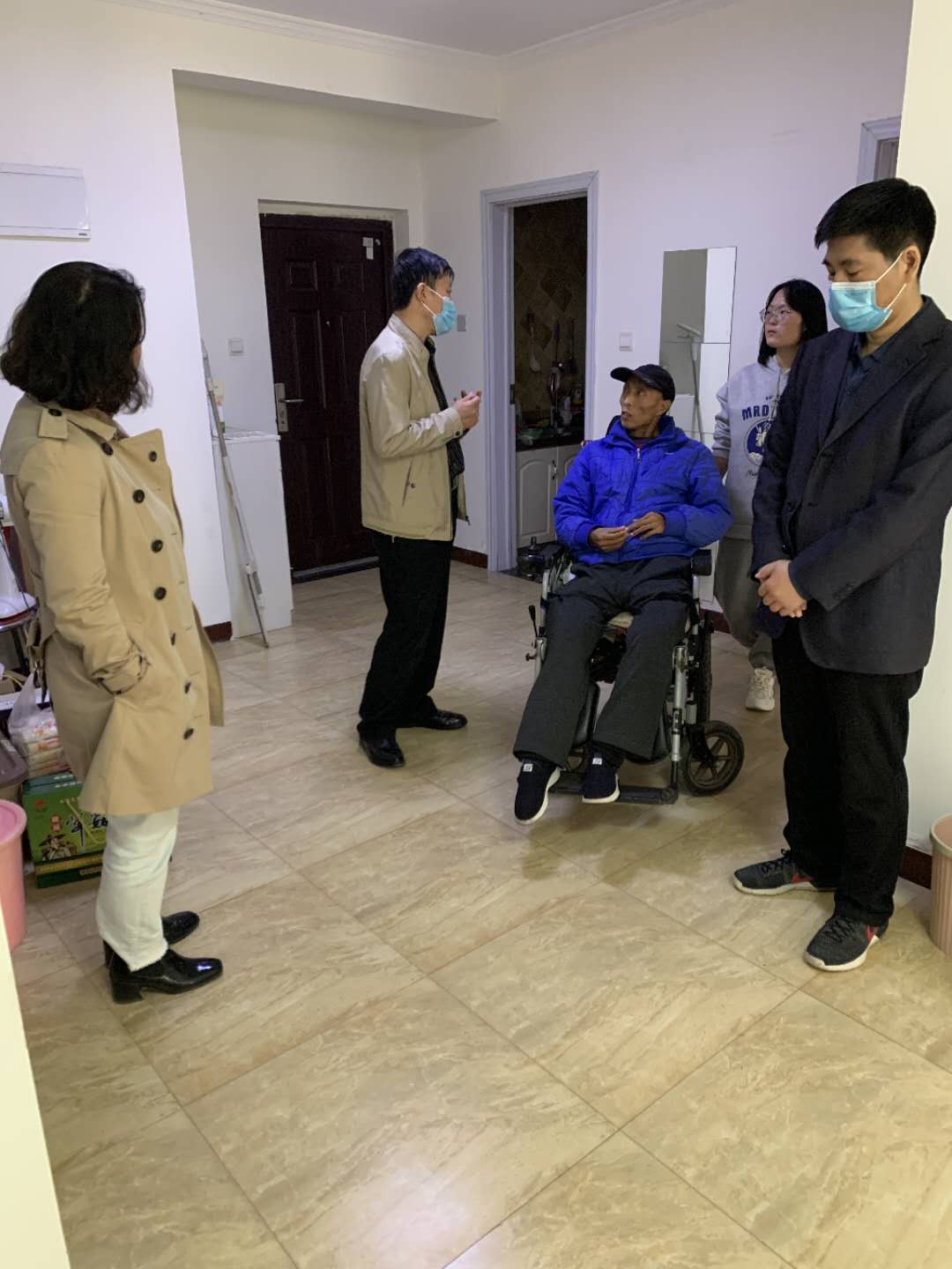 同时老师们为任淑娅的父亲带去了一些生活日用品以及食品并检查屋内安全隐患。最后,老师们鼓励任淑娅同学努力学习、全面发展,将爱心传递给他人和社会。