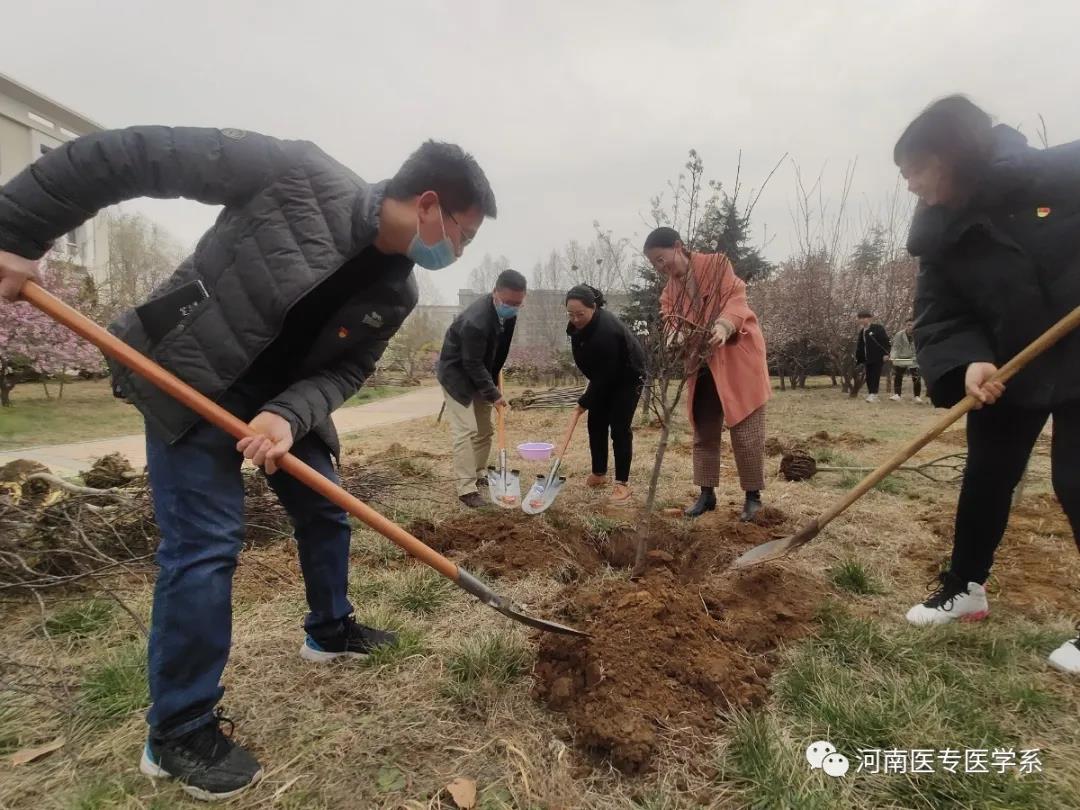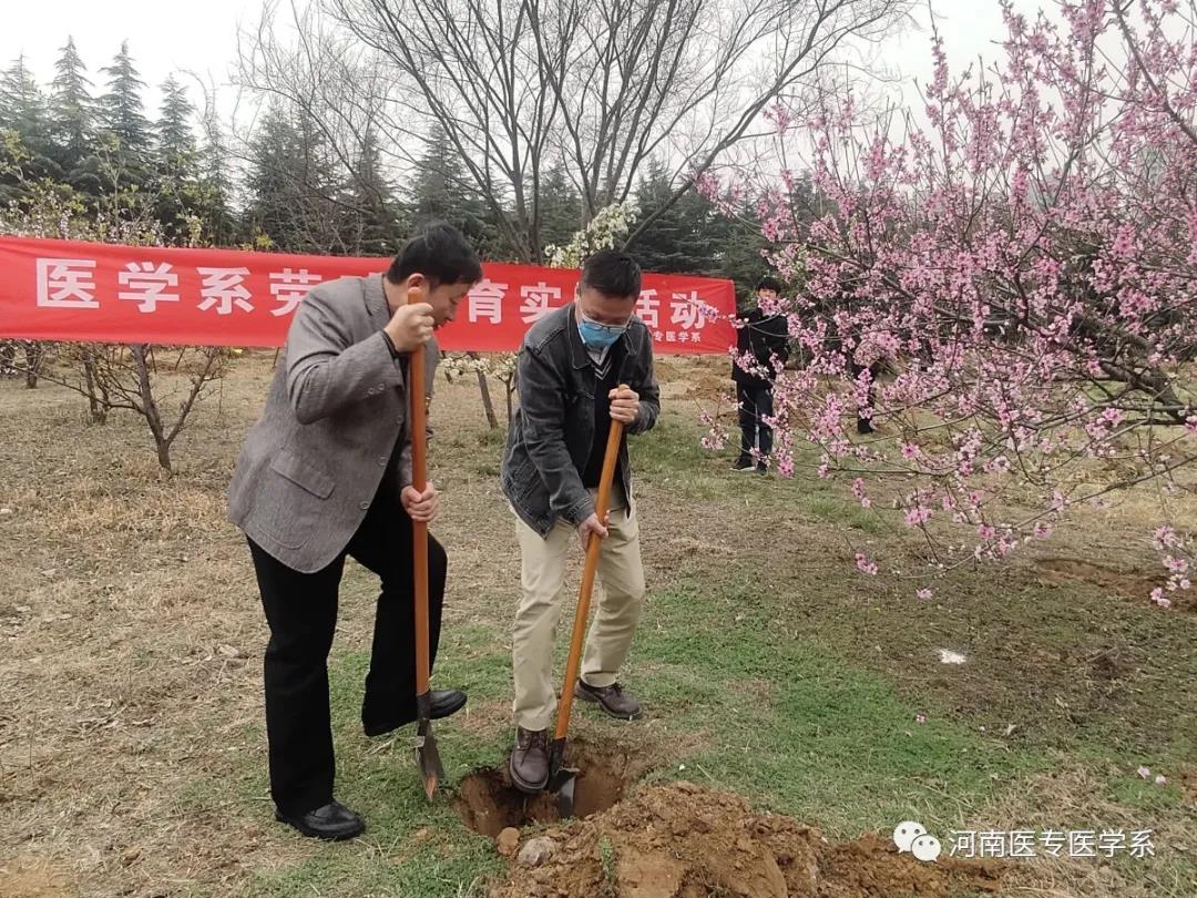 为了引导员工树立正确的劳动观念和劳动态度,帮助员工养成良好的劳动习惯,3月19日,我系利用植树节,开展了“义务植树,播种快乐”劳动教育实践活动。副董事长周斌受邀亲临现场,医学系党总支书记樊红亮、 副书记杨颖、医学系全体辅导员和四个专业的同学参加了劳动教育实践活动。
