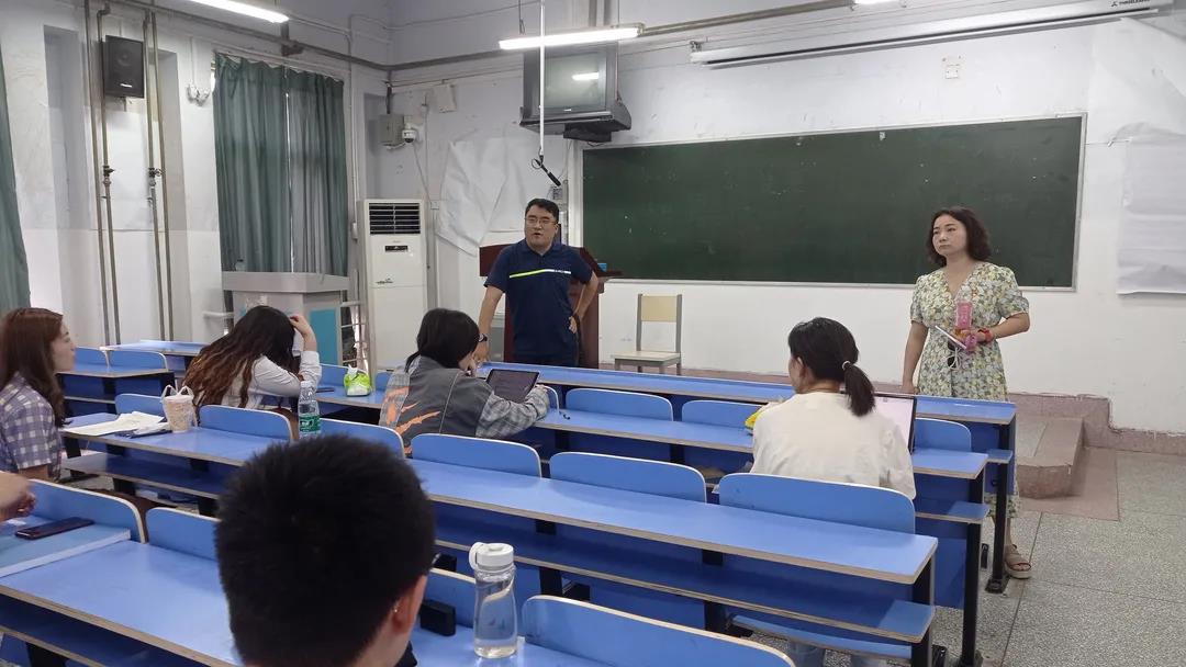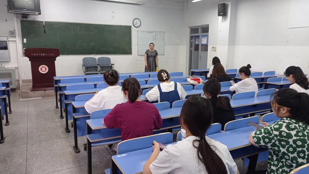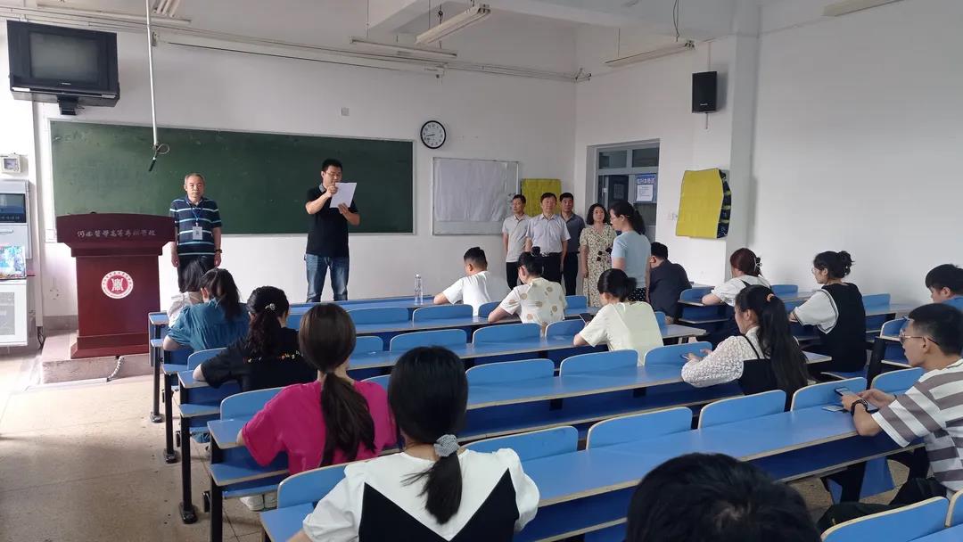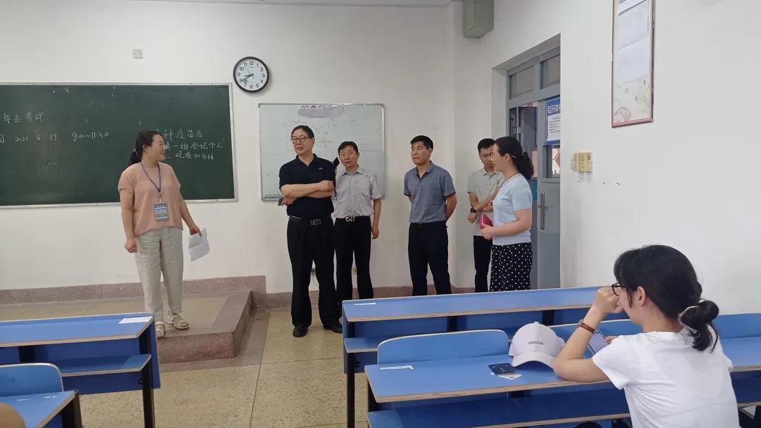2021年6月19日,医学系组织18级员工参加全省统考,医学系党总支书记樊红亮、主任杨红梅、副书记杨颖、副主任郭建新以及各位辅导员到我系各个考场巡视。