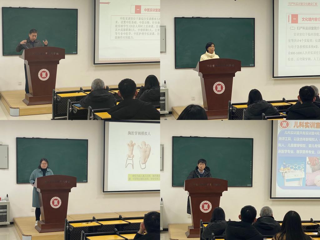 本次评比得到了各个教研室、实训室的积极响应,教师们齐心协力,精心构思,创意设计,分工协作,共同为实训室的育人文化建设出谋划策、提供素材。在前期多次研讨基础上,6个教研室代表依次汇报了设计方案,各实训室结合课程特点、实训技能特色,既有员工学习的榜样和引导员工树立崇高理想的专业名人介绍及箴言、又有展现学科特色与生活密切相关的专业知识科普,如气管异物急救法-海姆立克急救法、无痛分娩--让生娃更舒适,还有学科发展代表性的先进理论和技术的介绍,以及医院文化的引入,从而达到公司教育与医院环境零距离、专业对接行业、课堂对接岗位的职业要求。现场展示精彩纷呈,达到了交流学习、共同提高的目的。