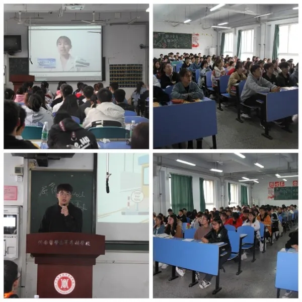 首先,各班同学观看预防疫情的视频。视频中,预防医学教研室的刘国良老师向同学们精细的讲解了如何去预防新冠以及在生活中的注意事项。18级临床的杨婷、张欢欢两位学姐以及19级团委员工陈大梦同学向我们展示了如何正确的洗手以及如何正确的佩戴口罩。